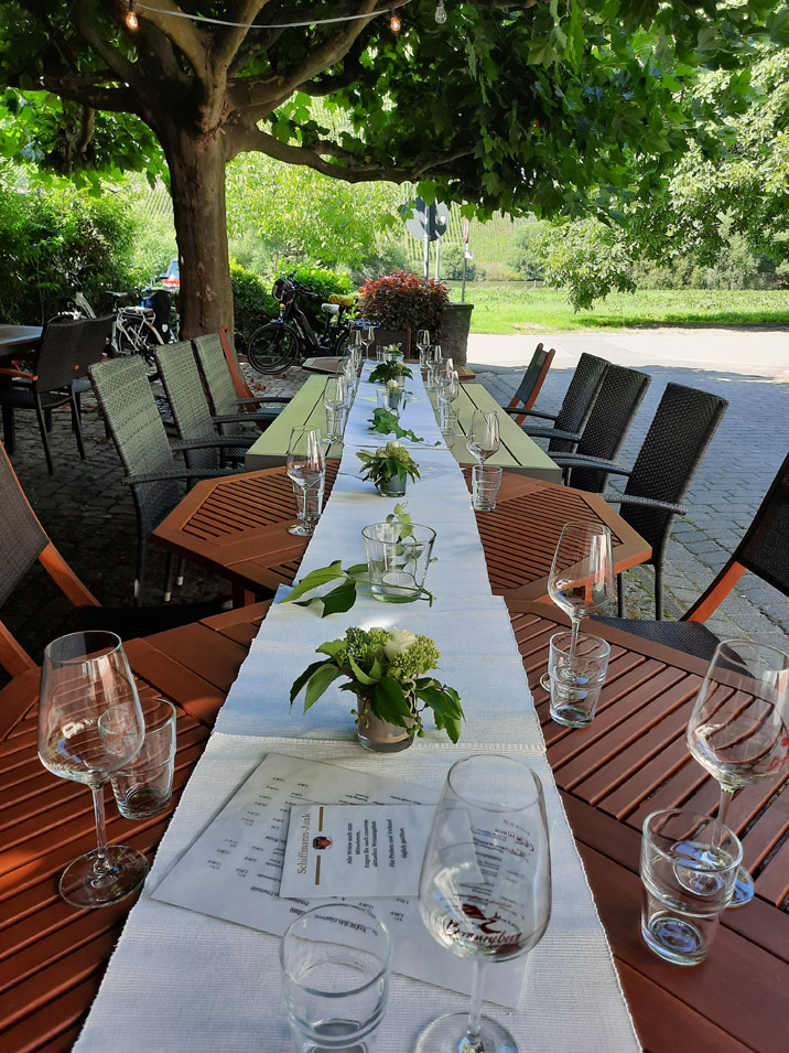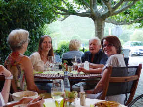 Ein gemütliches Plätzchen zum Verweilen finden Sie in der Weinlaube. Entspannen Sie bei einem GlasWein